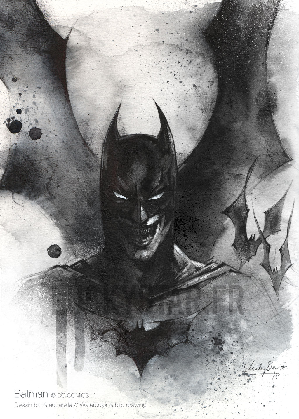 J’ai passé 10 ans sans dessiner par perte de motivation et manque de temps et un jour j‘ai vu BatmanBegins ! Donc j’aimais déjà Batman quand j’étais enfant, mais avec ce film j’ai de nouveau craqué sur ce super-héros. J’ai toujours aimé de toute façon les représentations de personnages un peu dark et torturés depuis mon enfance.BatmanBegins m’a fait de nouveau basculer vers le dessin et j’ai voulu dessiner Batman. Dans le même moment, je suis tombé sur le travail d’un dessinateur David Despau, ça été un choc visuel par son talent et par le fait qu’il dessine au bic.