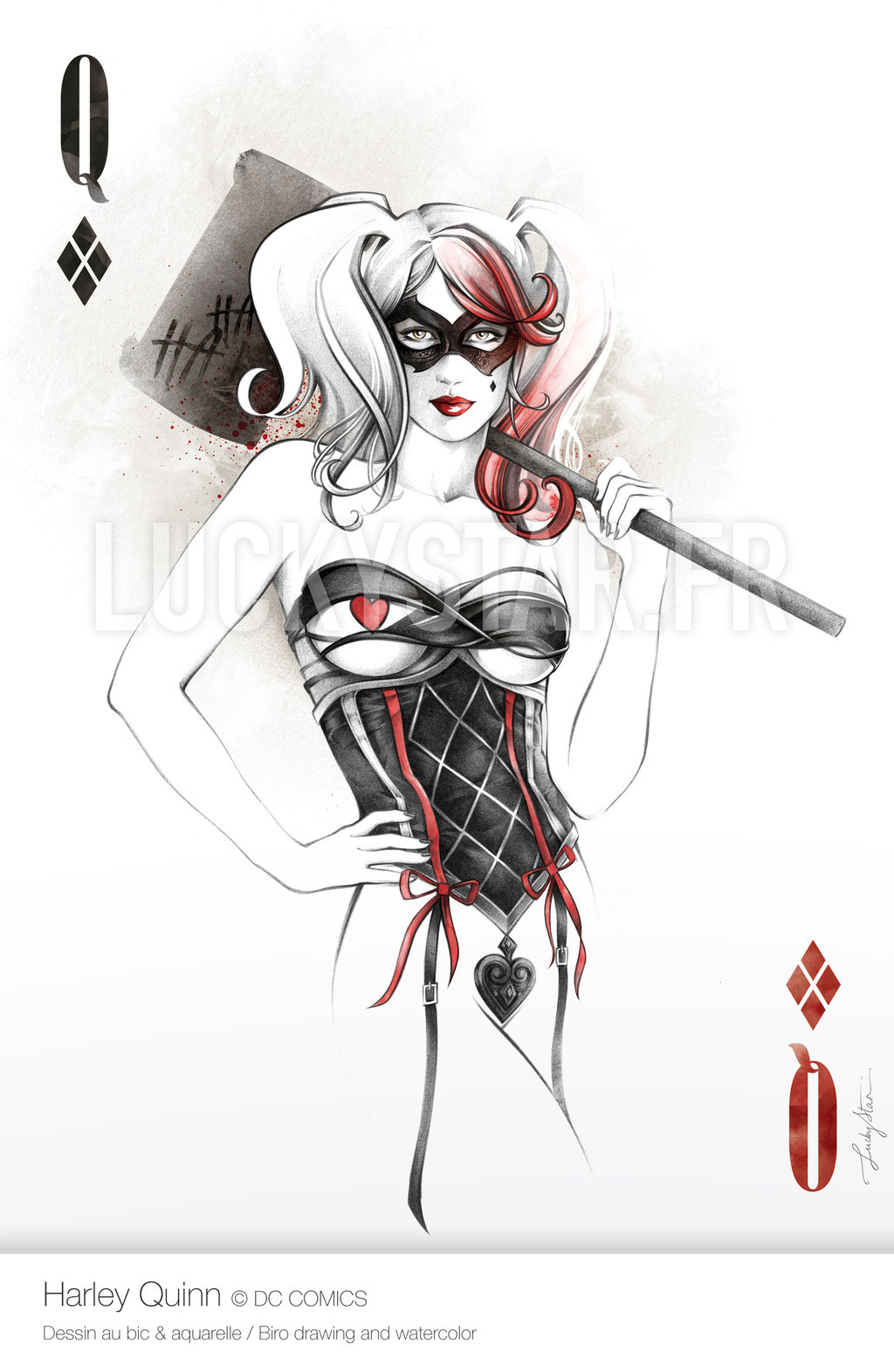 Stéphanie Lavaud : Je m’appelle Stéphanie, mon pseudo c’est LuckyStar. Je suis illustratrice, graphiste Freelance depuis 12 ans et je fais de l’illustration sur le thème des super héros et comics depuis 4/5 ans en tant qu’amateur.