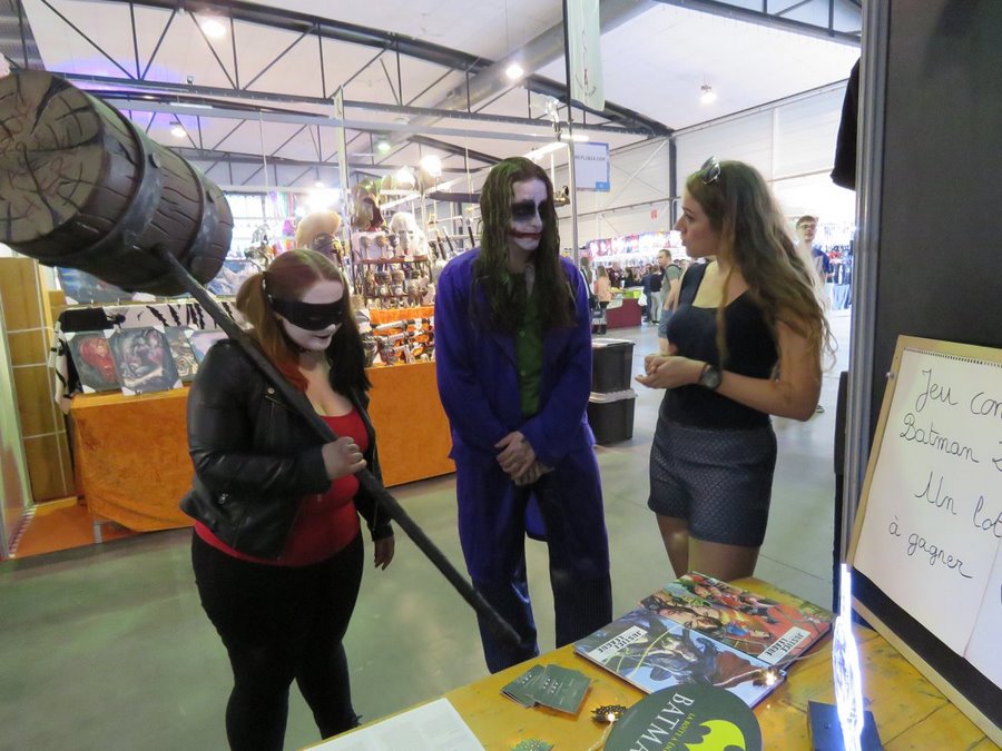 De nombreux participants à notre test de connaissances sur Batman se sont prêtés au jeu et de longues discussions passionnantes ont rythmés ces deux jours ! Je voudrais remercier particulièrement la joyeuse bande de cosplayeurs présents à Rouen, le Batman de Lorion Deyes Cosplay, le Batman de Tim Burton , deux superbes Harley Quinn avec Margaux et Mélissa et des Joker terrifiants ! Une belle équipe qu’on espère revoir !