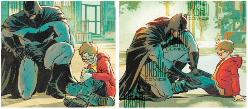 La quatrième histoire montre simplement Batman qui tente de sauver un meurtrier qui s’est jeté du haut d’un immeuble. Batman plonge avec lui dans le vide en essayant de le ramener vivant. C’est court, direct, mais ça rappelle bien que, même face aux pires criminels, Batman essaie toujours d’éviter la mort.
